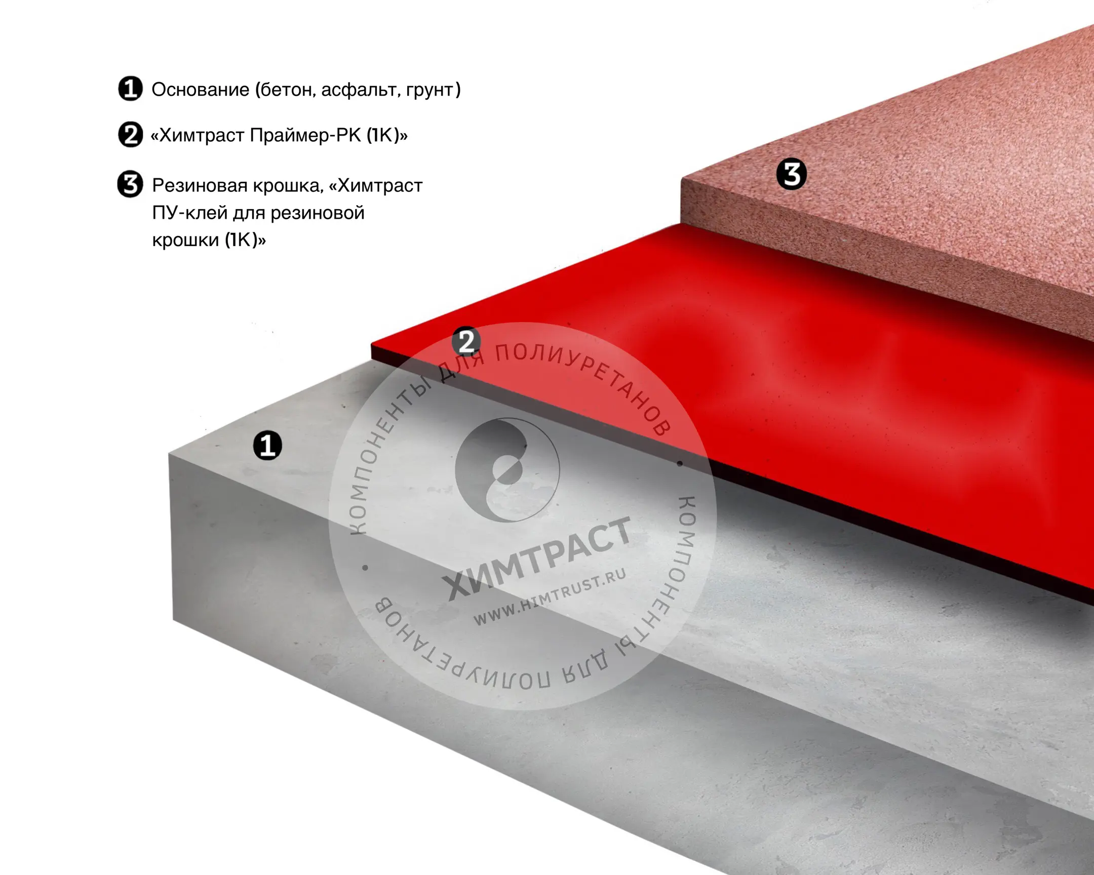 «Химтраст Праймер-РК (1К)» применяется для грунтования оснований перед нанесением покрытий из резиновой крошки. Подходит для пористых минеральных оснований, таких как бетон, цементно-песчаные стяжки, и непористых поверхностей различных материалов, включая битуминозные, асфальт и прочие.